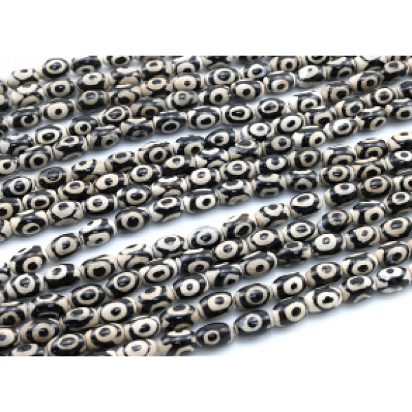 Бусины Дзи "Три глаза" из агата бочонок 9*12мм, 36см, 30 бусин