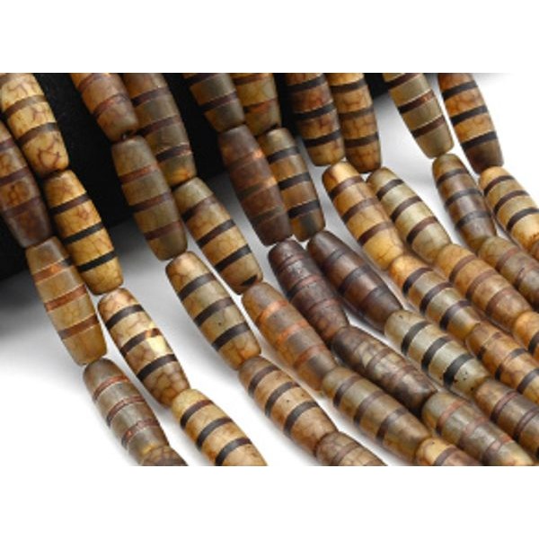 Бусины Дзи "Три полоски" из агата бочонок 10*30мм, цвет сепия, 30см, 10 бусин
