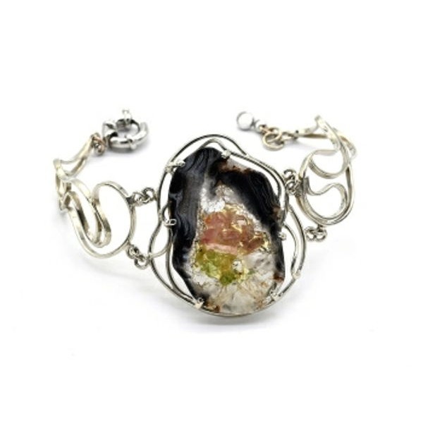 Браслет мозаика в агатовой жеоде, 18см.