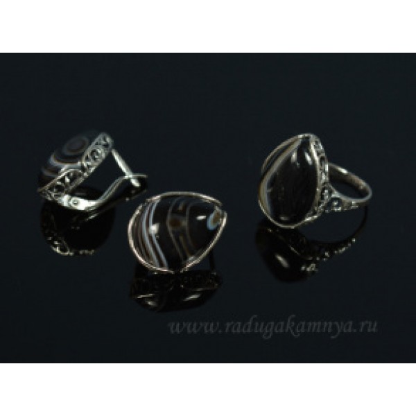 Кольцо и серьги с агатом