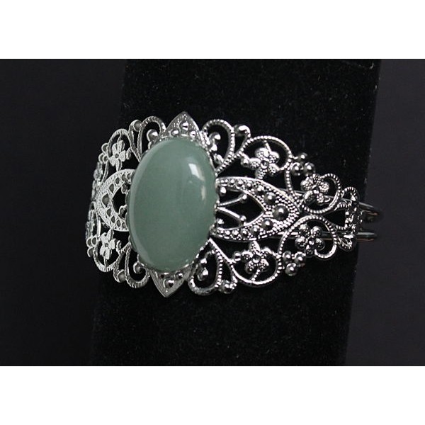 Браслет из авантюрина зеленого, филигрань, ручная работа, камень овал 25х18мм, овал 18х13мм