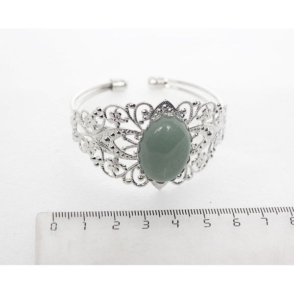 Браслет из авантюрина зеленого, овал 25х18мм, жесткая основа цвет ант.серебро