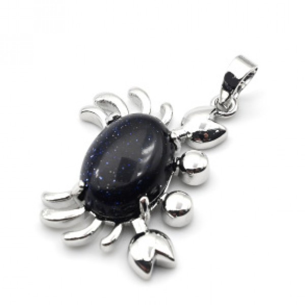 Кулон с авантюрином синим "Краб" 22*34мм в металле (иск.)