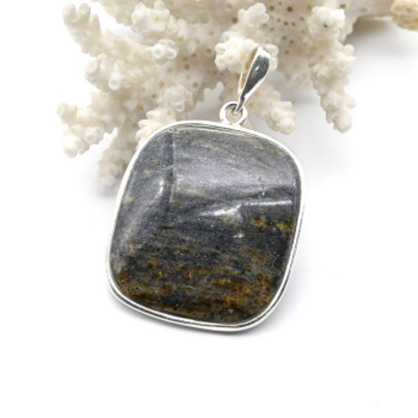 Кулон с авантюрином (уткинит) в посеребрении прямоугольник 32*35мм