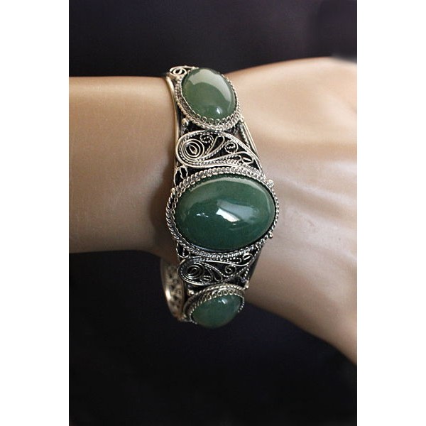 Браслет из яшмы зеленой, филигрань, ручная работа,..