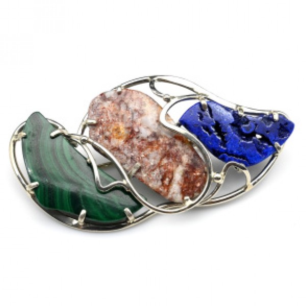 Брошь из малахита, азурита и авантюрина 60*30мм.