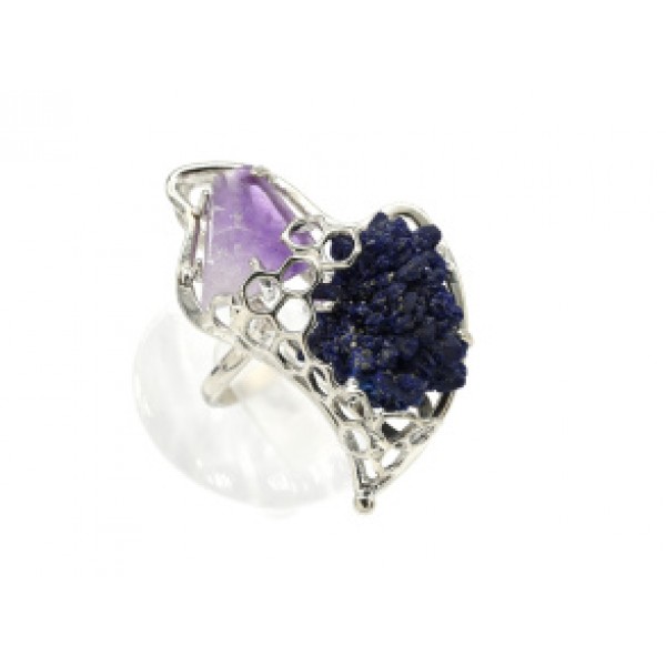 Кольцо аметист и азурит 23*37мм