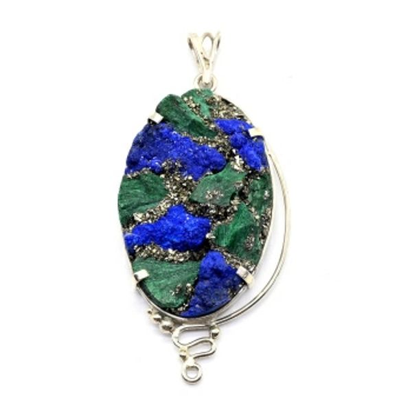Кулон из плисового малахита и азурита 32*56мм.