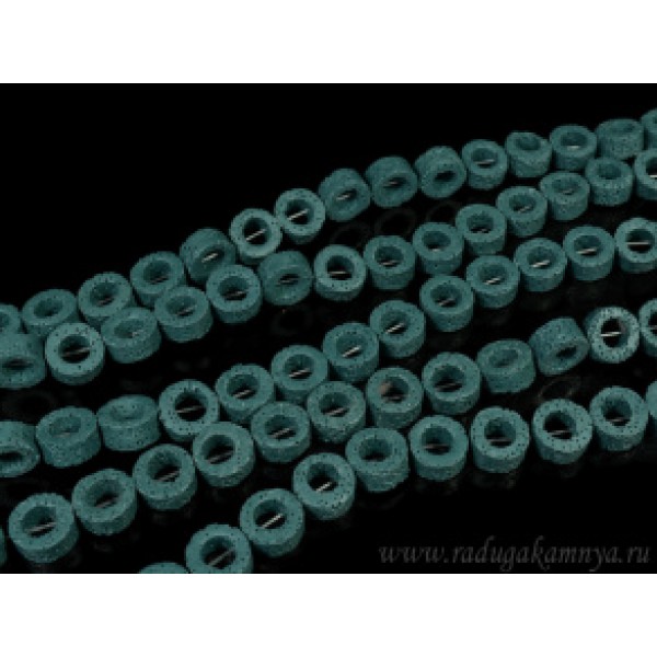 • Бусины из лавы кольцо 15мм, цвет изумрудный 40см, 26 бусин