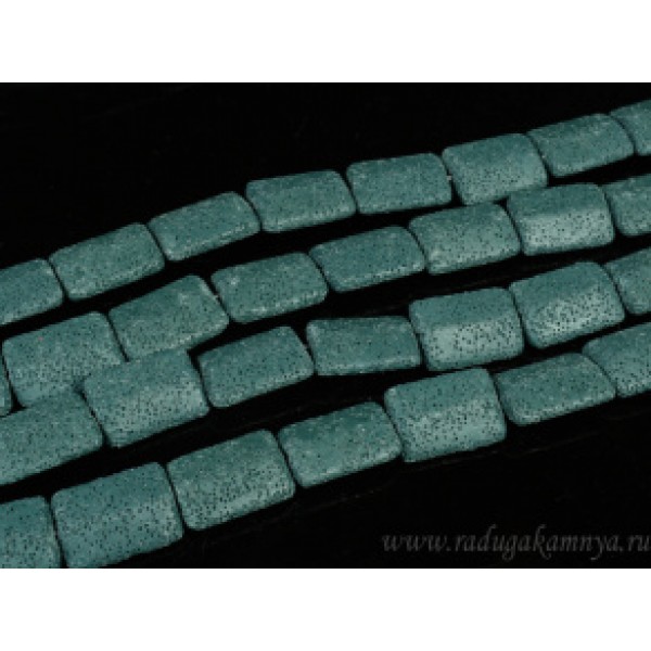 Бусины из лавы прямоугольник 28*20, цвет изумрудный 38см, 14 бусин.