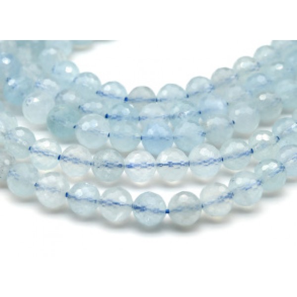 • Бусины из аквамарина шарик гр.7-7,5мм, 39см, 54 бусины