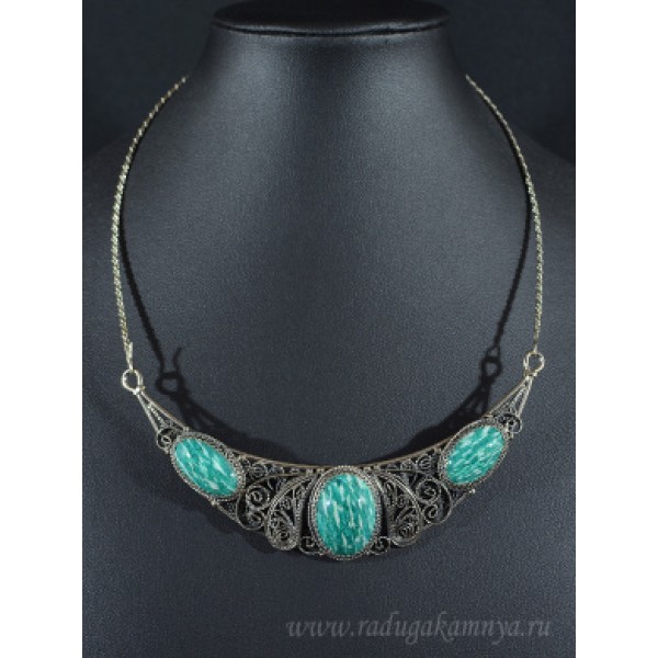 Брошь из амазонита, овал 25х18мм, оправа с узором ..