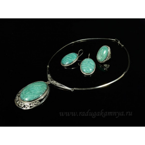 Кольцо из амазонита, литое широкое, цвет родиум, с..