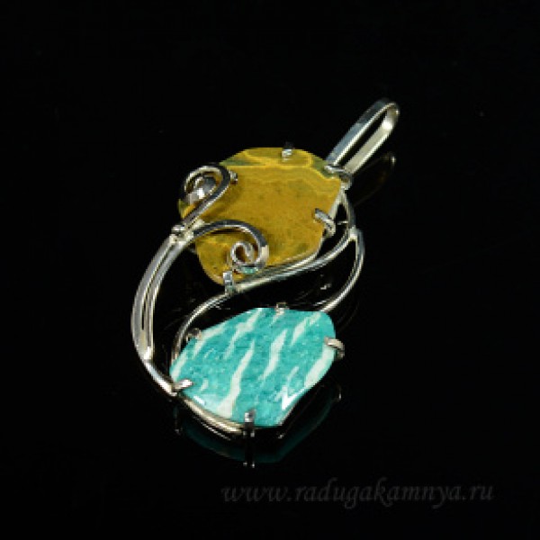• Кулон  из яшмы и амазонита, 27*48мм.