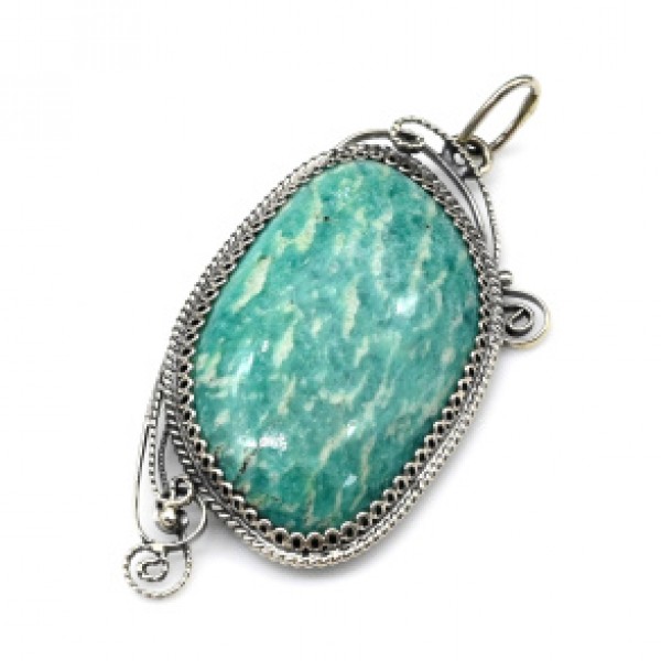 Брошь из амазонита, овал 25х18мм, оправа с узором ..