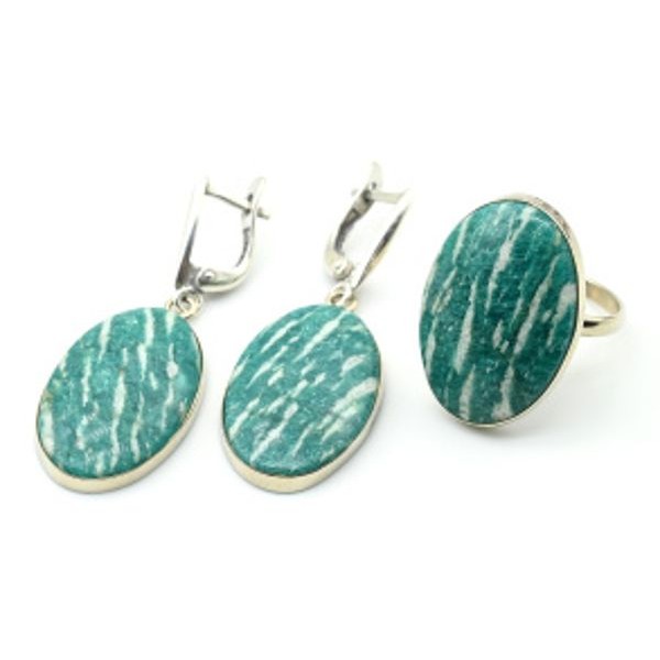 Кольцо и серьги с амазонитом " Овал "