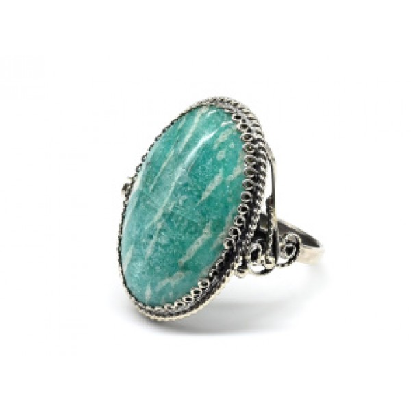 Кольцо с амазонитом из ювелирного сплава