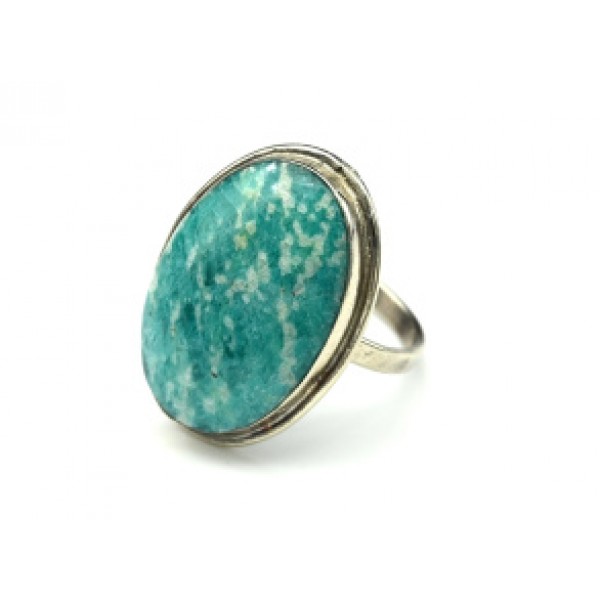 Большое кольцо с амазонитом из ювелирного сплава..