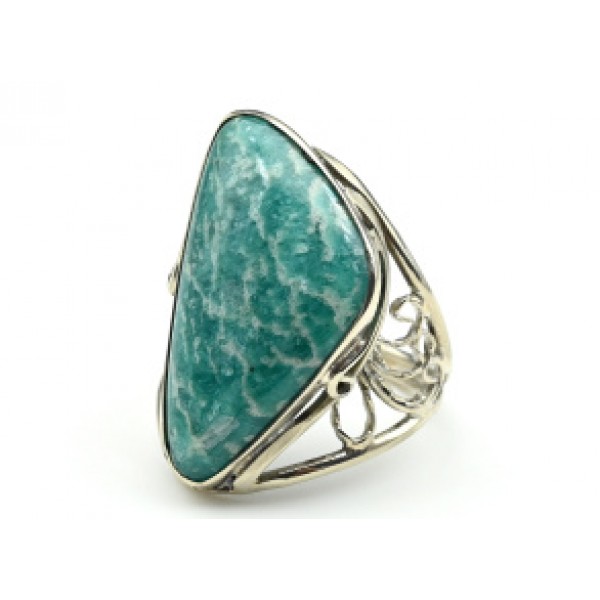 Большое кольцо с амазонитом из ювелирного сплава..
