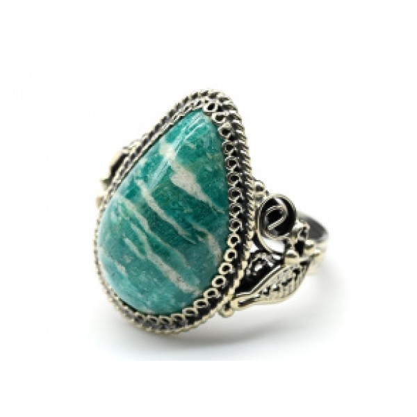 Большое кольцо с амазонитом из ювелирного сплава..