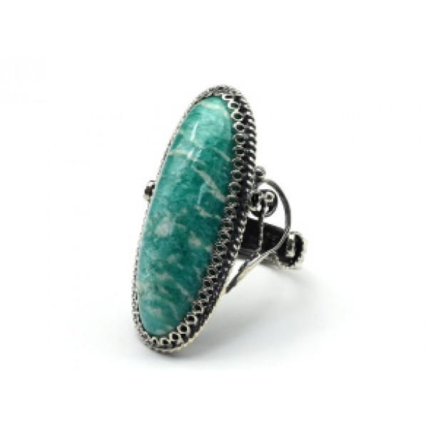 Большое кольцо с амазонитом из ювелирного сплава..