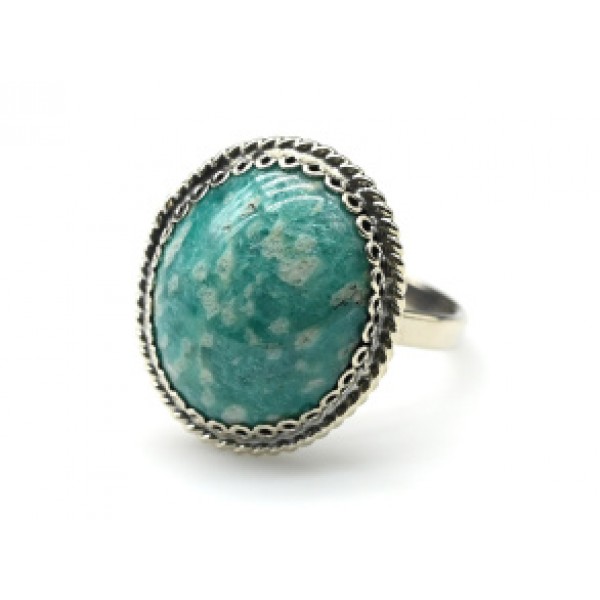 Кольцо с амазонитом из ювелирного сплава