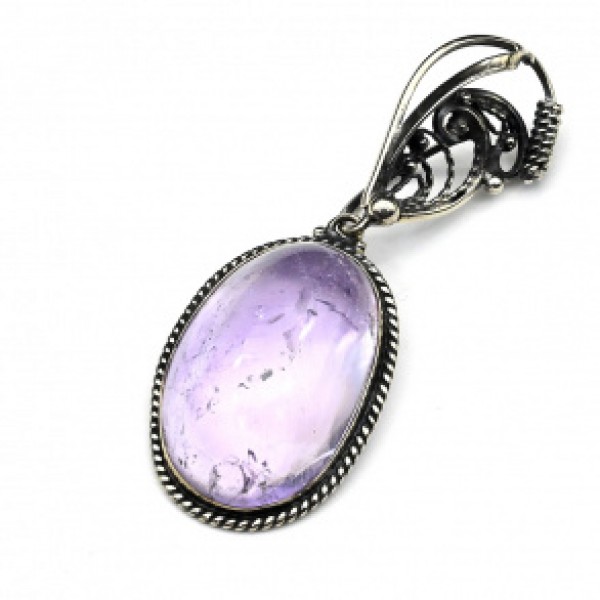 Брошь из аметиста, с ажурным контуром, цвет ант. серебро, овал 25х18мм
