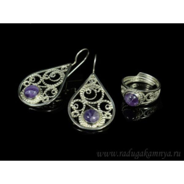 Кольцо и серьги с аметистом
