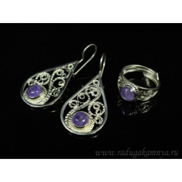 Кольцо и серьги с аметистом