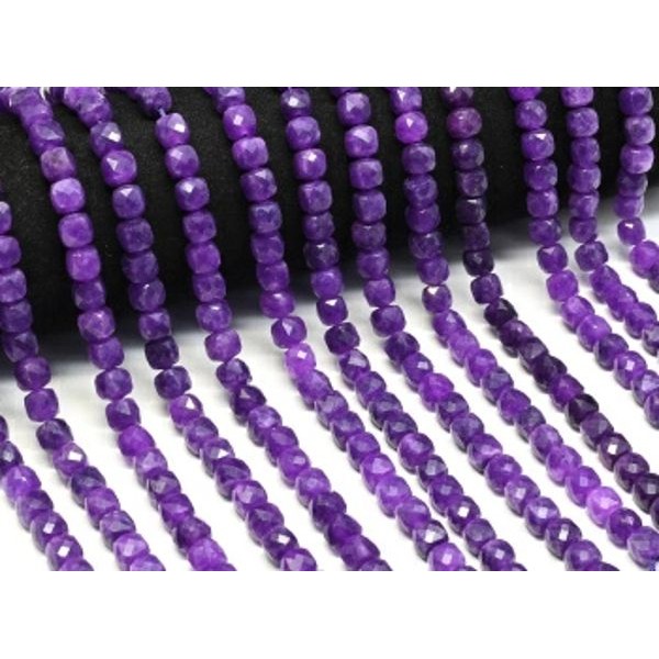 Бусины из кальцита кубик гр.7мм цвет аметист, 38см, 53 бусины