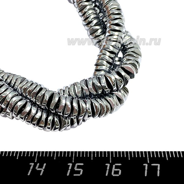 • Натуральный камень ГЕМАТИТ бусина граненая Чипсы 6*1,5 мм,  цвет серебро, около 20 см/нить