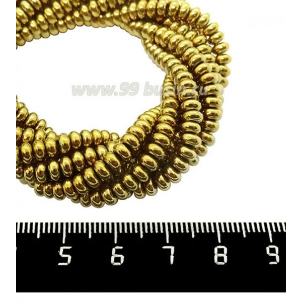 Натуральный камень ГЕМАТИТ рондель 4*2 мм, цвет золото, 40 см/нить