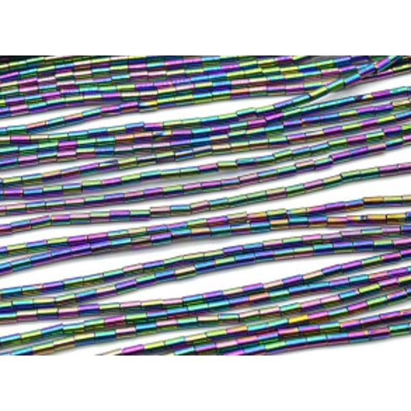 Бусины из гематита цилиндр 2*4мм цвет хамелеон, 38см, 93 бусины
