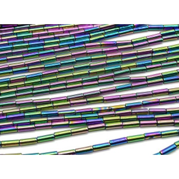 Бусины из гематита цилиндр 3*9мм цвет хамелеон, 40см, 43 бусины