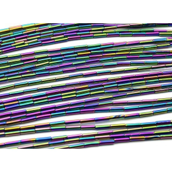 Бусины из гематита цилиндр 2*8мм цвет хамелеон, 38см, 48 бусин