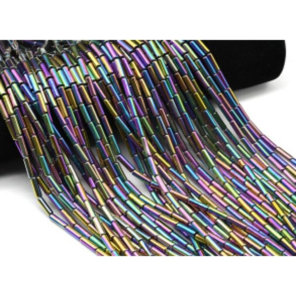 Бусины из гематита цилиндр 4*12мм цвет хамелеон, 40см, 32 бусины