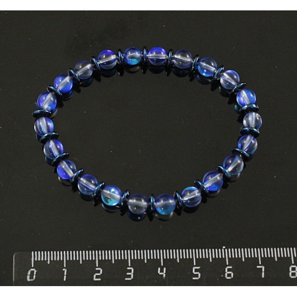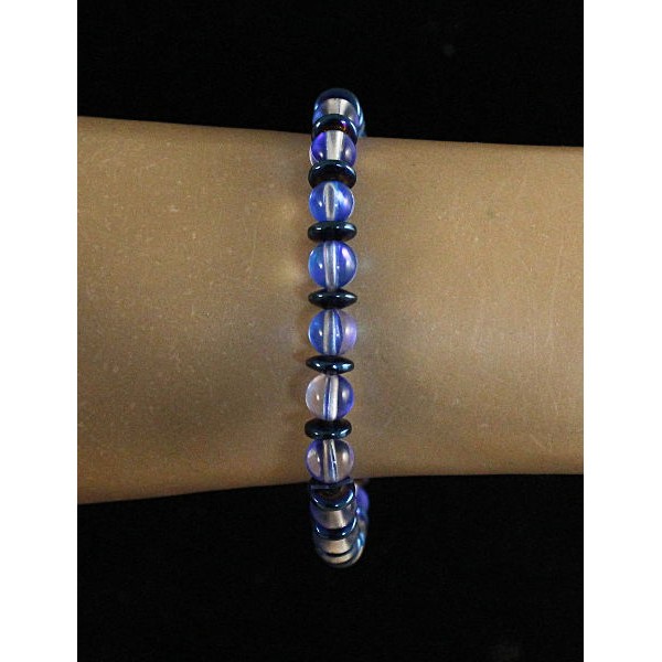 Браслет из гематита (синий, тонировка, рондели) и опала иск. (шарик 6мм)