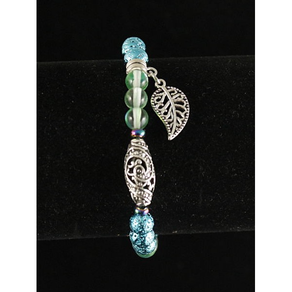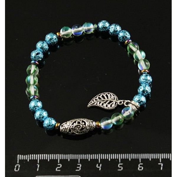 Браслет гематит тонир. рондель, лава тонир., опал иск. зеленый, бусина ажурная 18мм, с подвеской