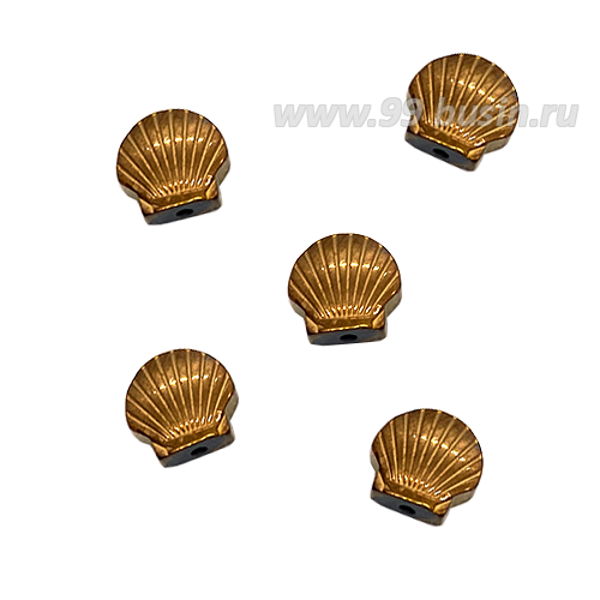 Натуральный камень ГЕМАТИТ бусина Ракушка 9*8,5 мм, цвет шоколад, 10 штук/упаковка