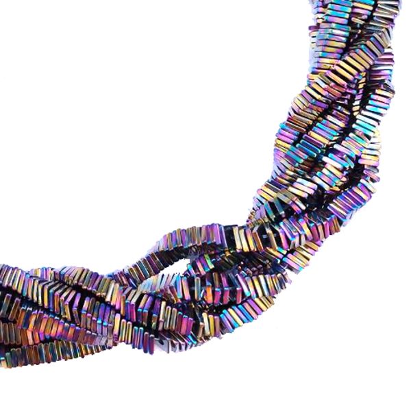 Натуральный камень ГЕМАТИТ с покрытием под ПИРИТ маленький цилиндрик 2*2 мм, цвет фиолетовый, 40 см/нить