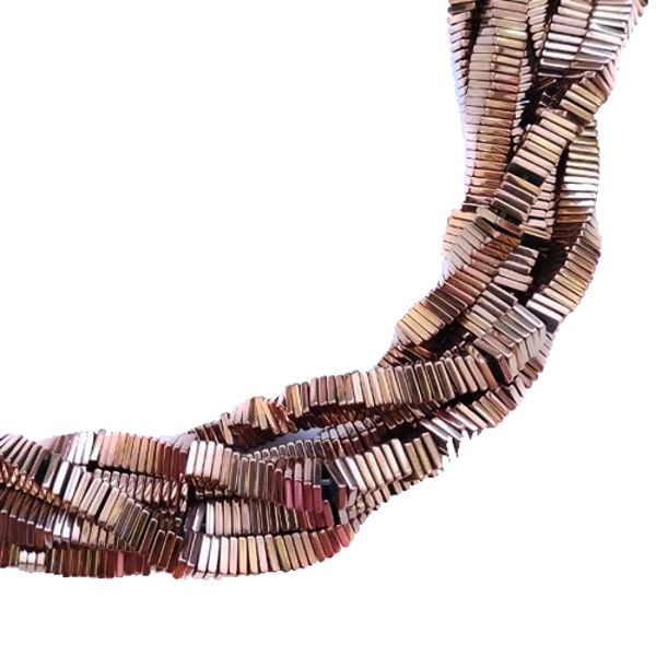 Натуральный камень ГЕМАТИТ с покрытием под ПИРИТ маленький цилиндрик 2*2 мм, цвет темное античное золото, 40 см/нить