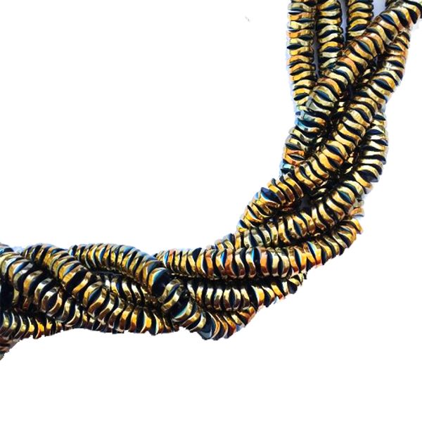 Бусины из гематита колесико волна 6мм цвет золото, 40см, 135 бусин