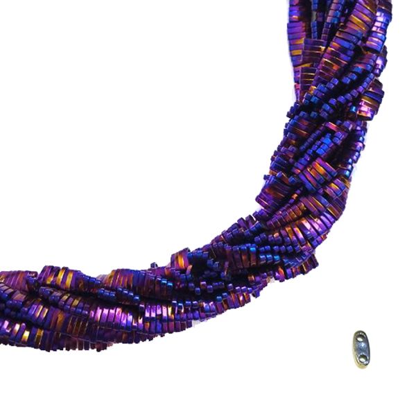 Натуральный камень ГЕМАТИТ с покрытием под ПИРИТ маленький цилиндрик 2*2 мм, цвет фиолетовый, 40 см/нить