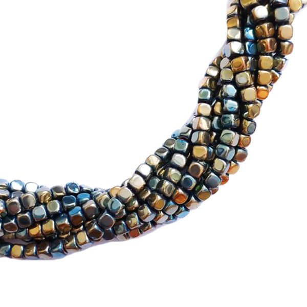 Натуральный камень ГЕМАТИТ кубик 4*4 мм, цвет сине-золотой, 40 см/нить