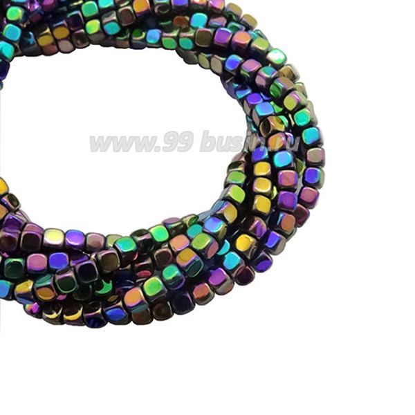 Натуральный камень ГЕМАТИТ кубик 4*4 мм, цвет мультиколор, 40 см/нить