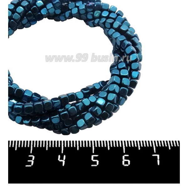 Натуральный камень ГЕМАТИТ кубик 3*3 мм, цвет синий, 40 см/нить