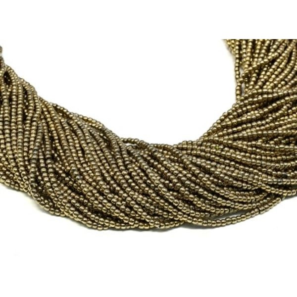 Натуральный камень ГЕМАТИТ с покрытием под ПИРИТ маленький цилиндрик 2*2 мм, цвет темное античное золото, 40 см/нить