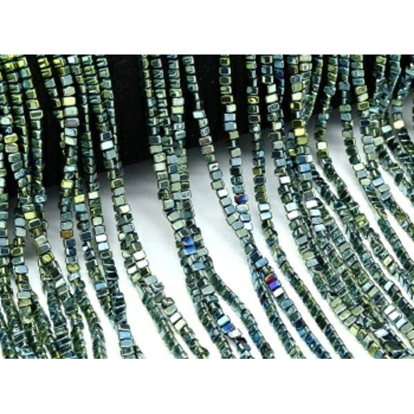 Натуральный камень ГЕМАТИТ с покрытием под ПИРИТ спейсер 4*2 мм, цвет голубовато-зеленый мультиколор, 40 см/нить