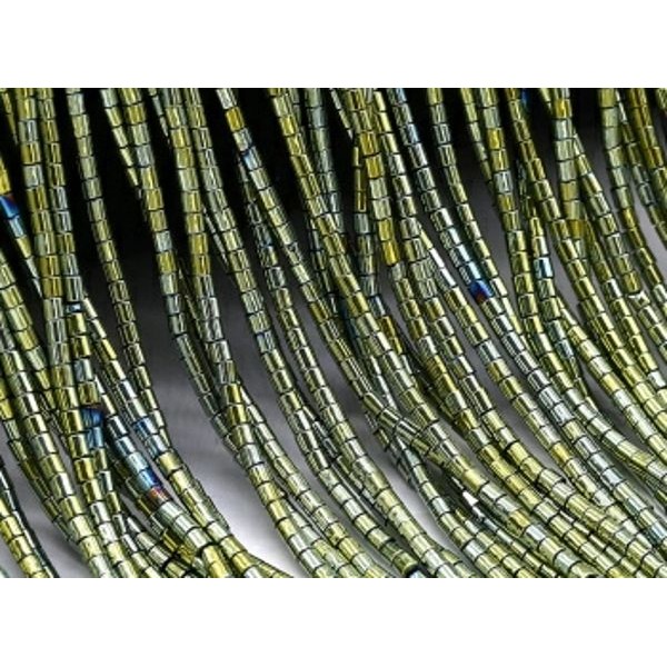 Натуральный камень ГЕМАТИТ с покрытием под ПИРИТ маленький цилиндрик 2*2 мм, цвет темное античное золото, 40 см/нить