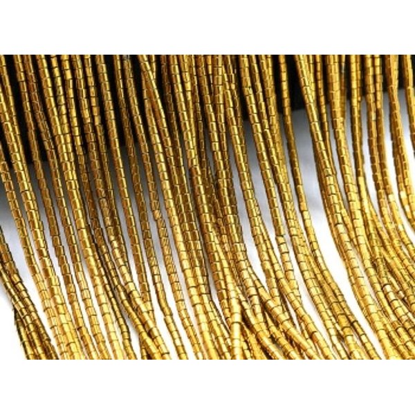 Натуральный камень ГЕМАТИТ с покрытием под ПИРИТ маленький цилиндрик 2*2 мм, цвет темное античное золото, 40 см/нить